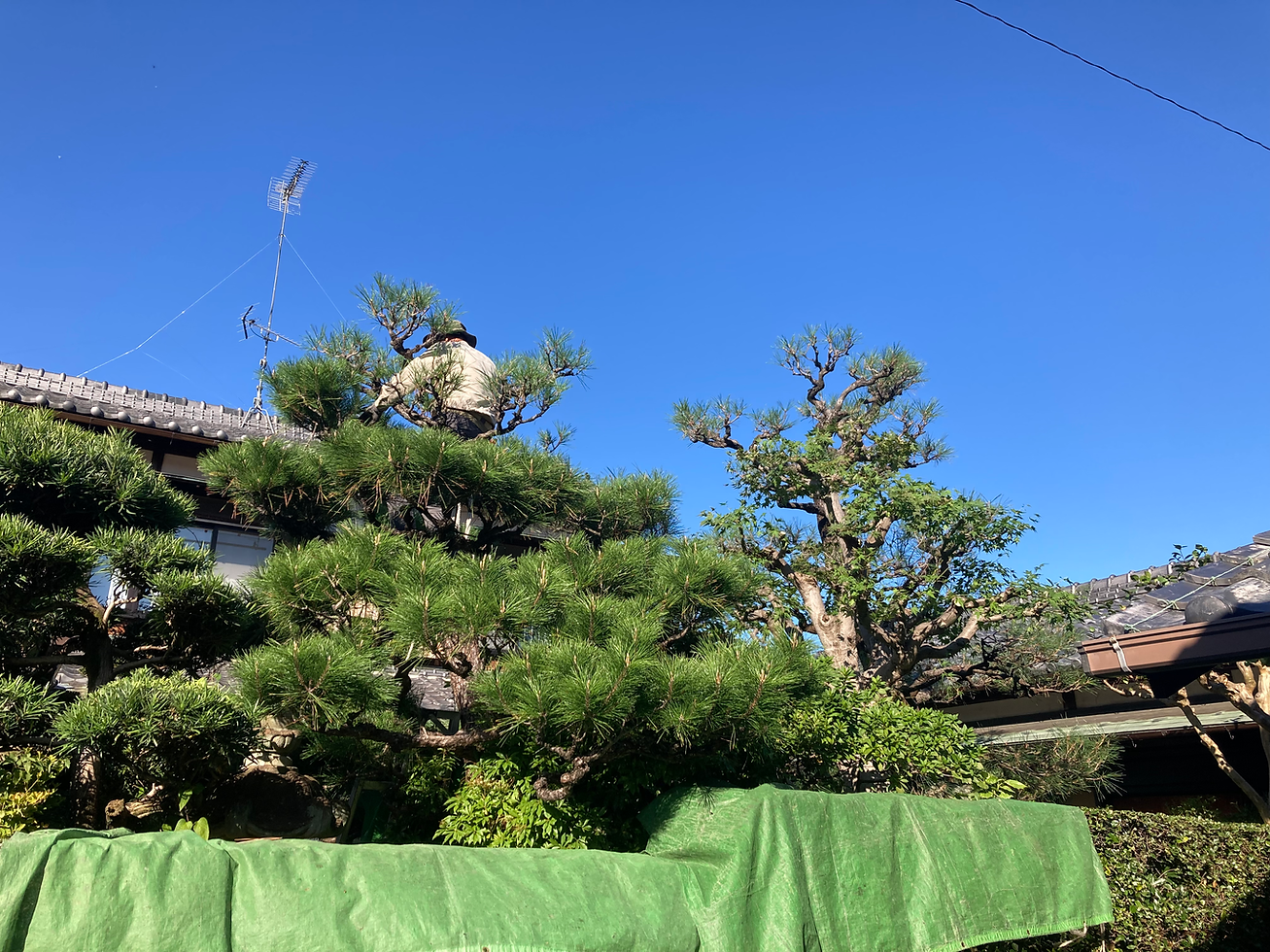 とても広いお庭に庭木がいっぱい植ってる。松だけでも大小7本ある。1日2日じゃとても終わらない現場。