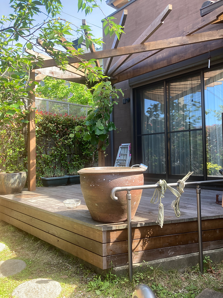 「パーゴラにキウイの棚は外せない❗️」という強い希望だったので、これは造園ならでは、って感じかな。
